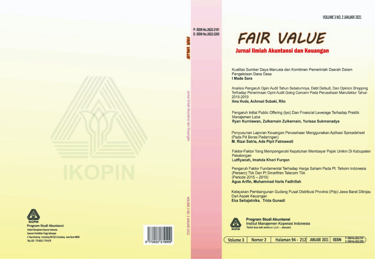 Fair Value: Jurnal Ilmiah Akuntansi dan Keuangan - e-ISSN: 2622-2205 (online), p-ISSN: 2622-2191 (print) is an open access, peer-reviewed journal published by the Department of Accounting, Indonesian Cooperative Institute, Indonesia (now Ikopin University). To improve the quality of the journal, per issue of Volume 6 Number 1, this journal is published three times a year, namely in April, August, and December.